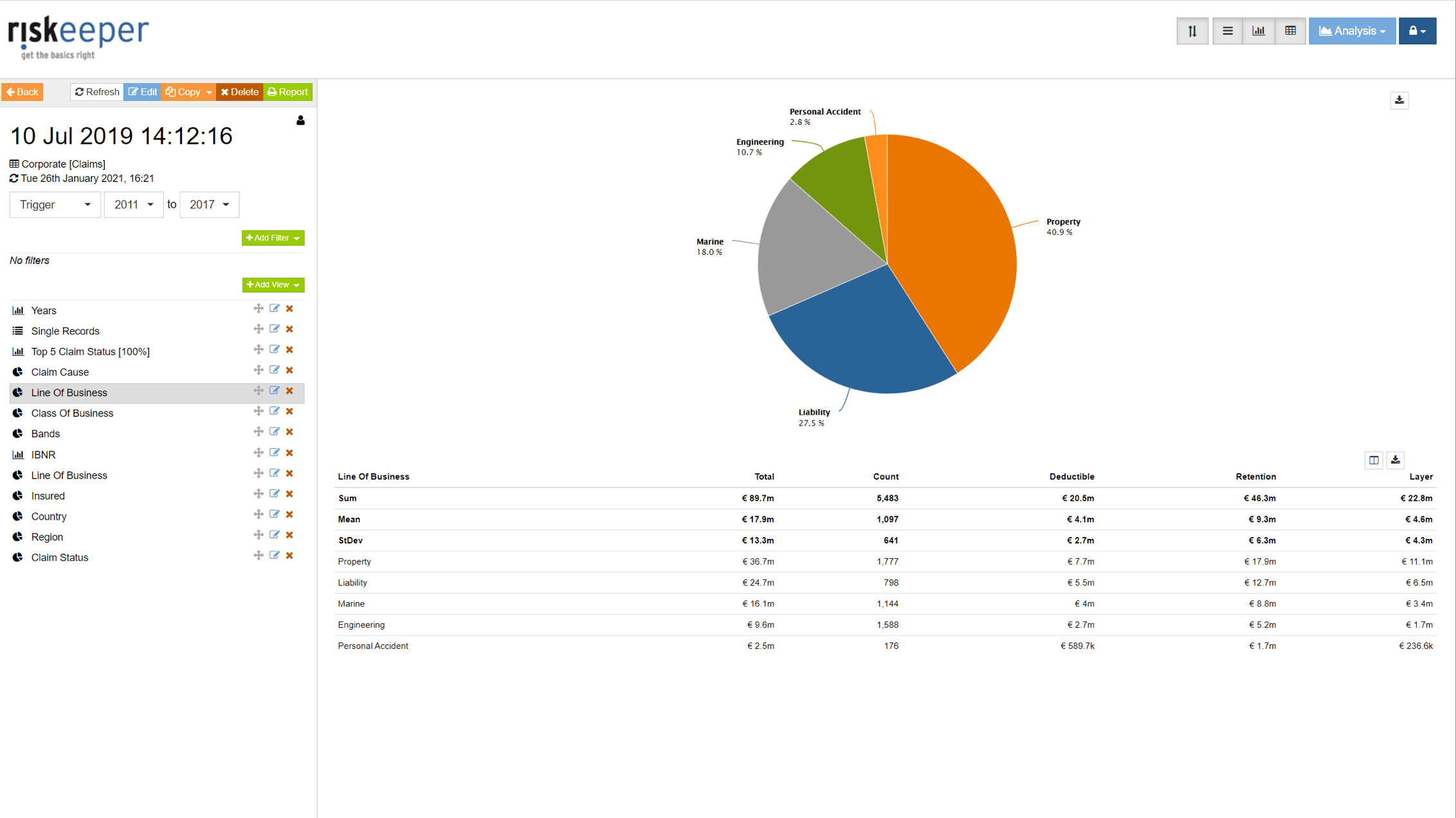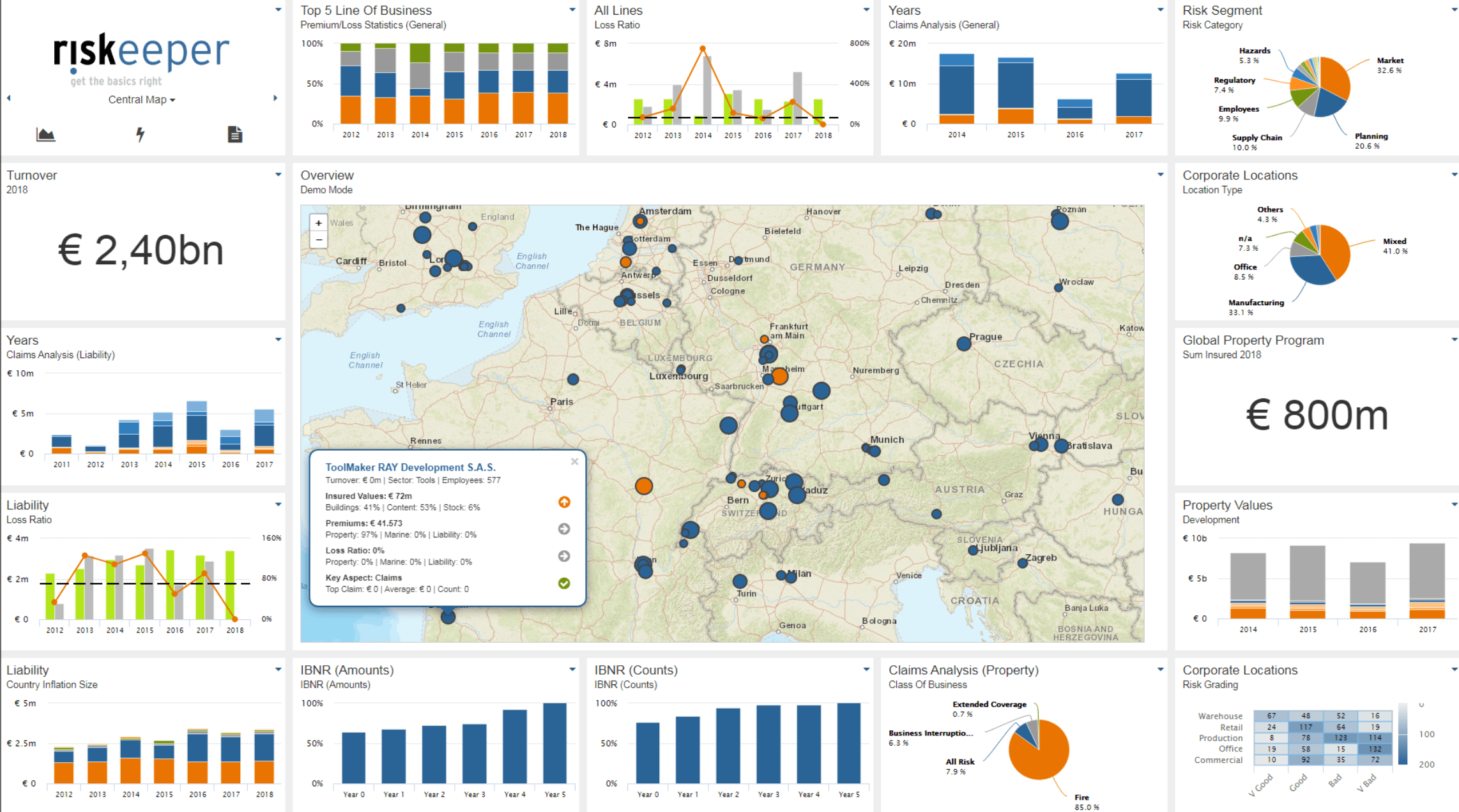 Be it loss experience, risk exposures or adequate risk transfer premiums: RiskeeperCockpit provides access to technical insurance data derived from the consolidation of reliable risk management information.